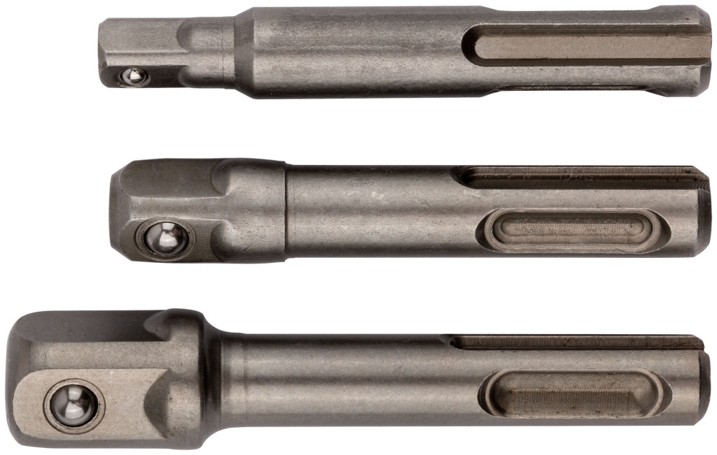 Под головки с хвостовика SDS-PLUS. В наборе: 3 адаптера (1/4"; 3/8"; 1/2"). Материал: легированная сталь.