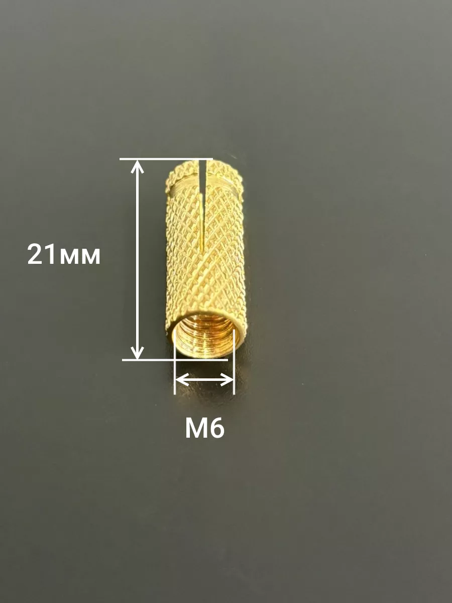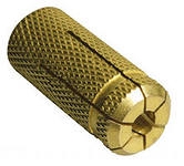 Представляет собой простейшую и надежную конструкцию. Это небольшая втулка из латуни покрытая нарезкой для лучшего сцепления со стеной. Та часть, которая расположена в глубине отверстия, имеет деление на четыре сегмента. Эти сегменты предназначены для обеспечения надежного распора и крепления в теле стены.