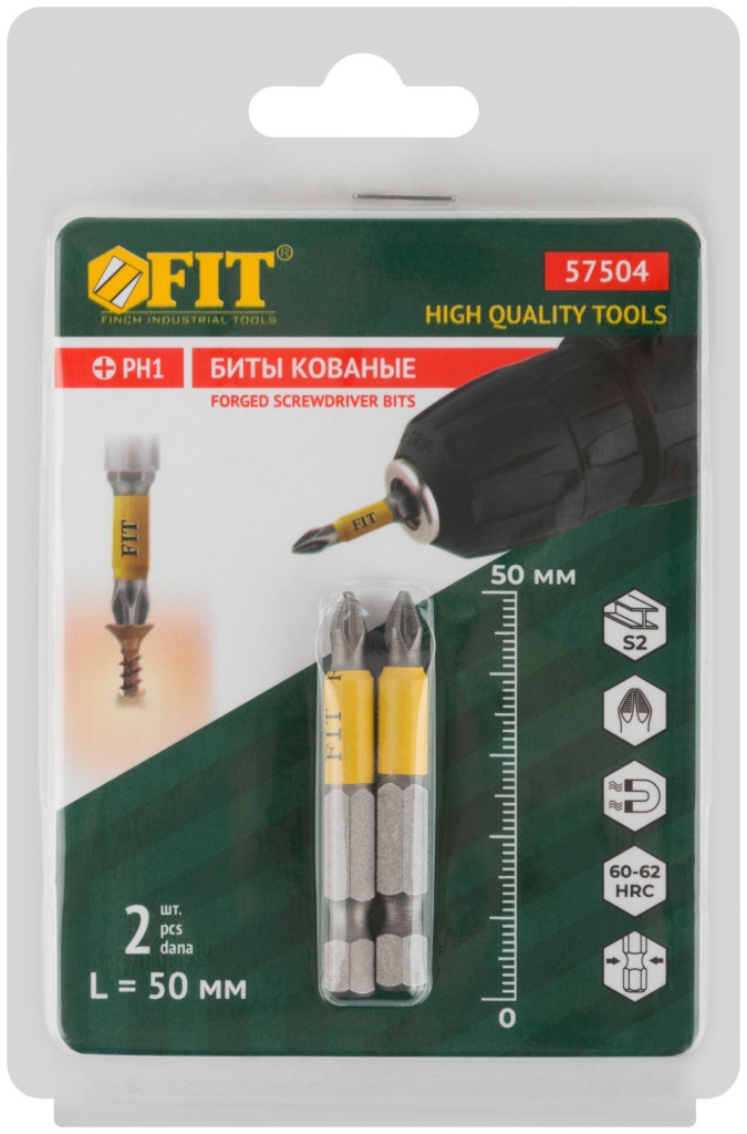 Биты кованые, сталь S2, одностор. 50 мм РН1, 2шт. Профи, блистер