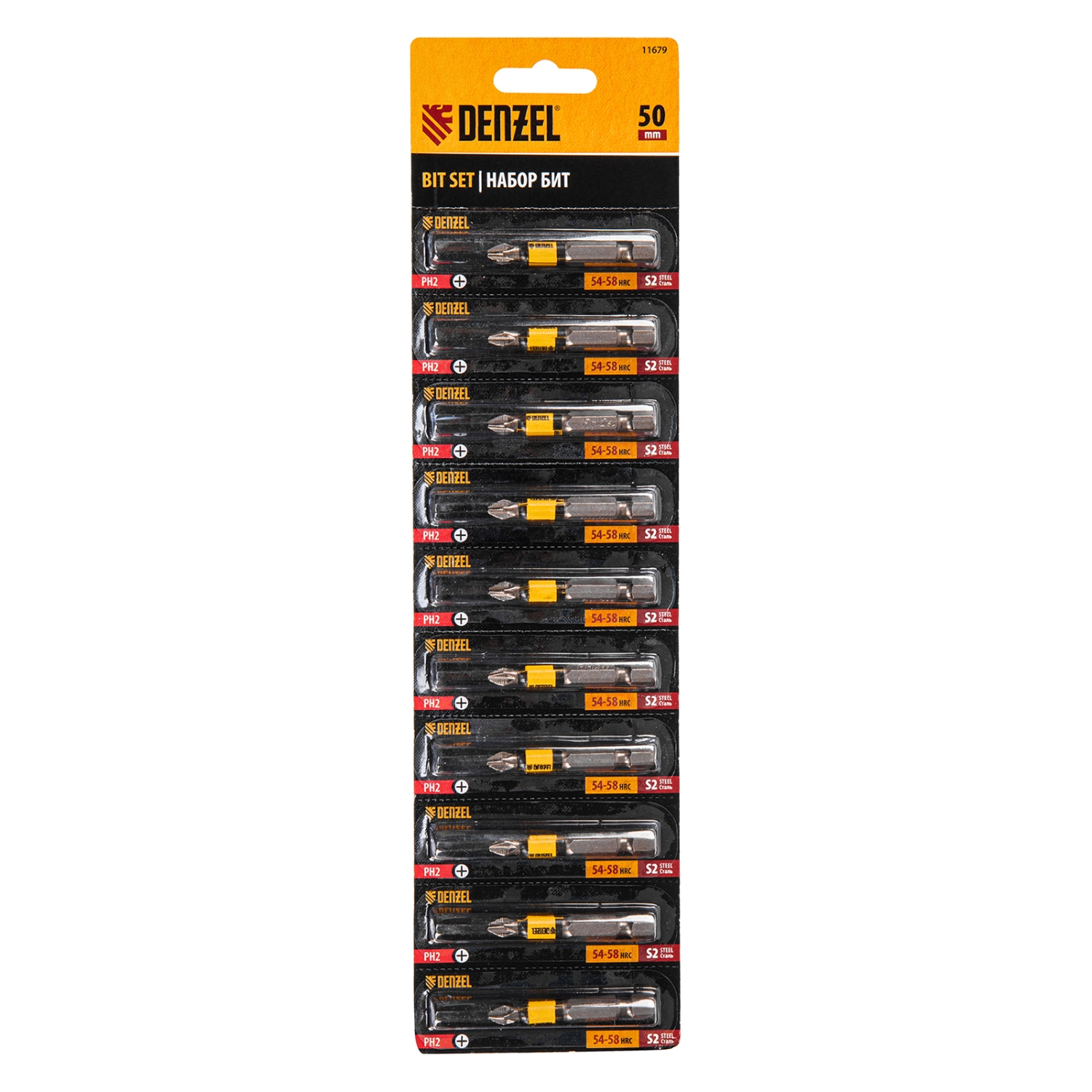 Биты круглый профиль сталь S2 PH2х50 отрывная упаковка Denzel