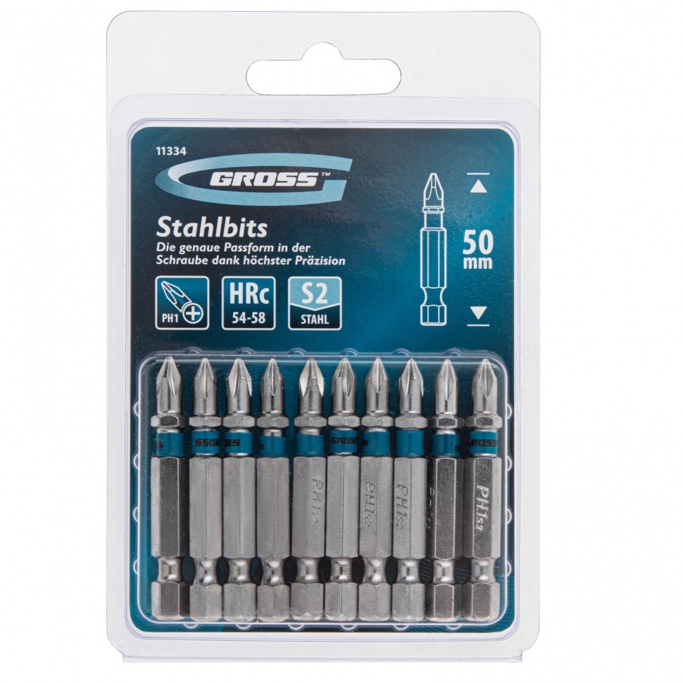 Набор бит Gross 11334 состоит из 10 наиболее востребованных крестообразных насадок типа PH1 длиной 50 мм, с хвостовиком 1/4 дюйма, изготовленных из стали S2 и предназначенных для использования с шуруповертами и отвертками-адаптерами. За счет оптимальной геометрии и высокой точности исполнения шлица биты не проскальзывают в головках крепежа. Оснастки используются для монтажа и демонтажа саморезов по дереву, шурупов и других резьбовых крепежей. Износостойкость и долговечность — биты изготовлены из японской легированной стали S2 твердостью 54-58 HRC, поэтому долго сохраняют рабочие свойства.