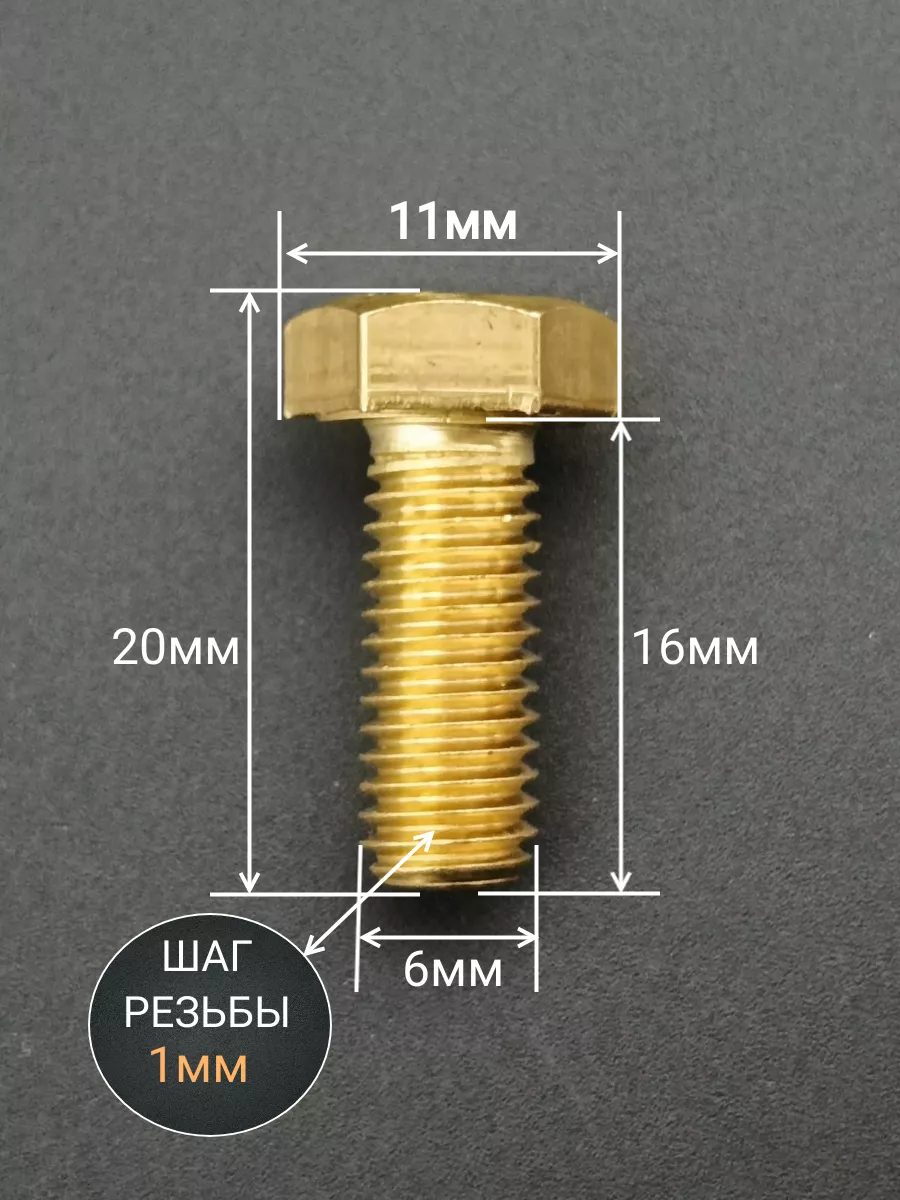 Болт латунный М6х16 DIN933,10 шт