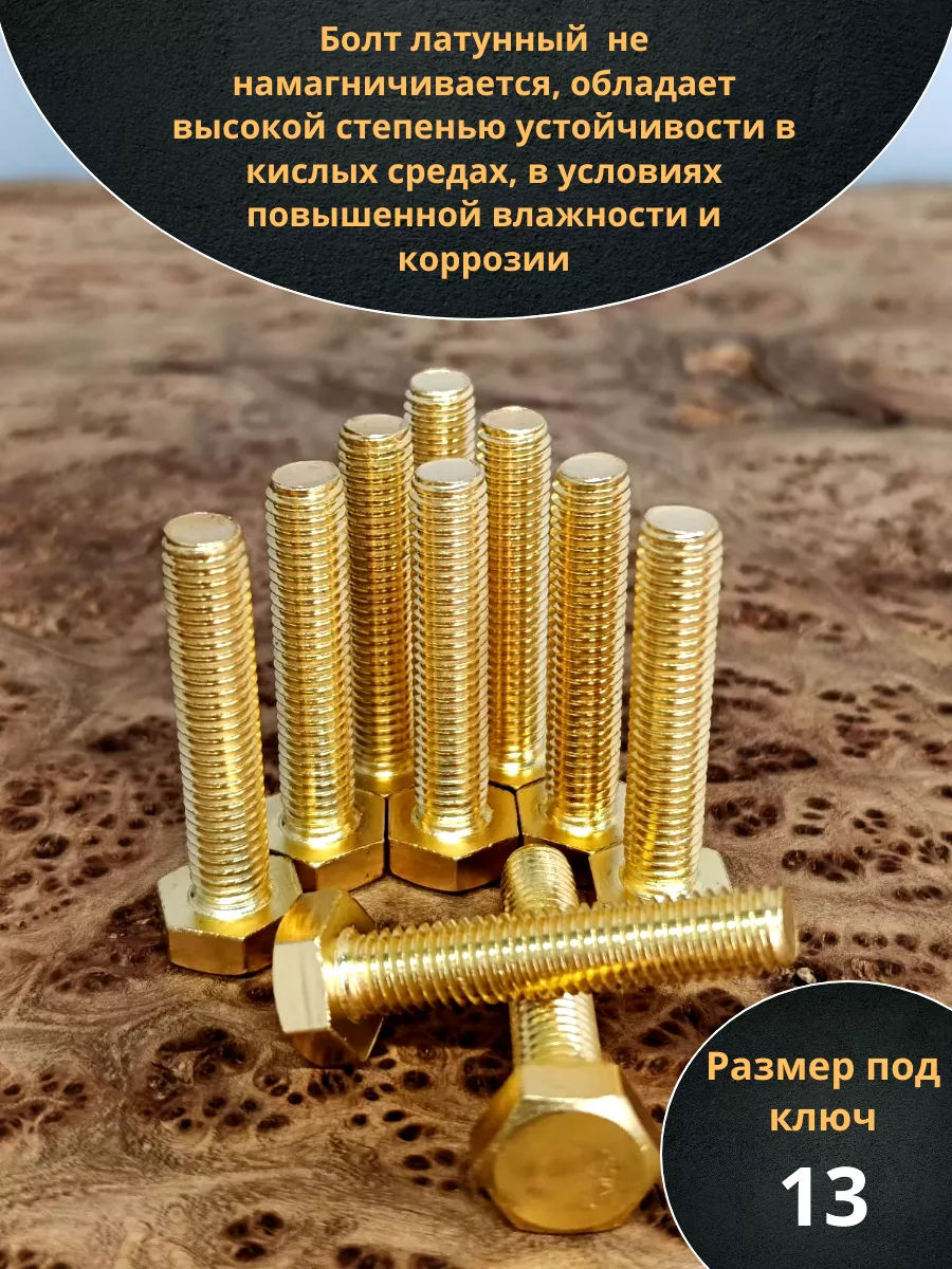 Болт латунный М8х35 DIN933,10 шт