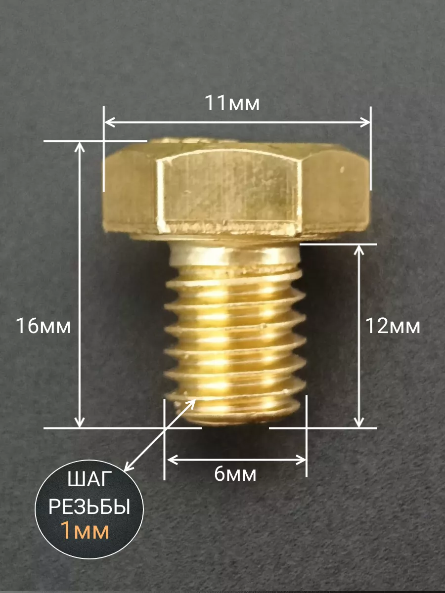 Болт латунный М6х30 DIN933,10 шт