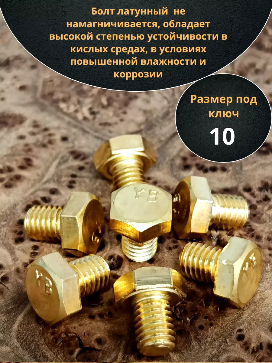Болт латунный М10х16 DIN933,10 шт