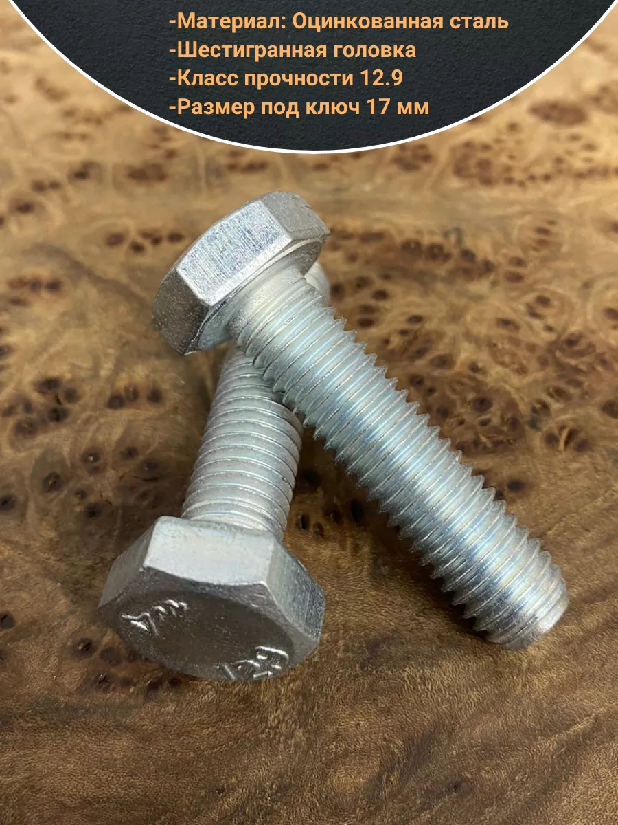 Болт 10х40 мм, DIN933, высокопрочный к.п. 12.9, ОЦ , 10шт.