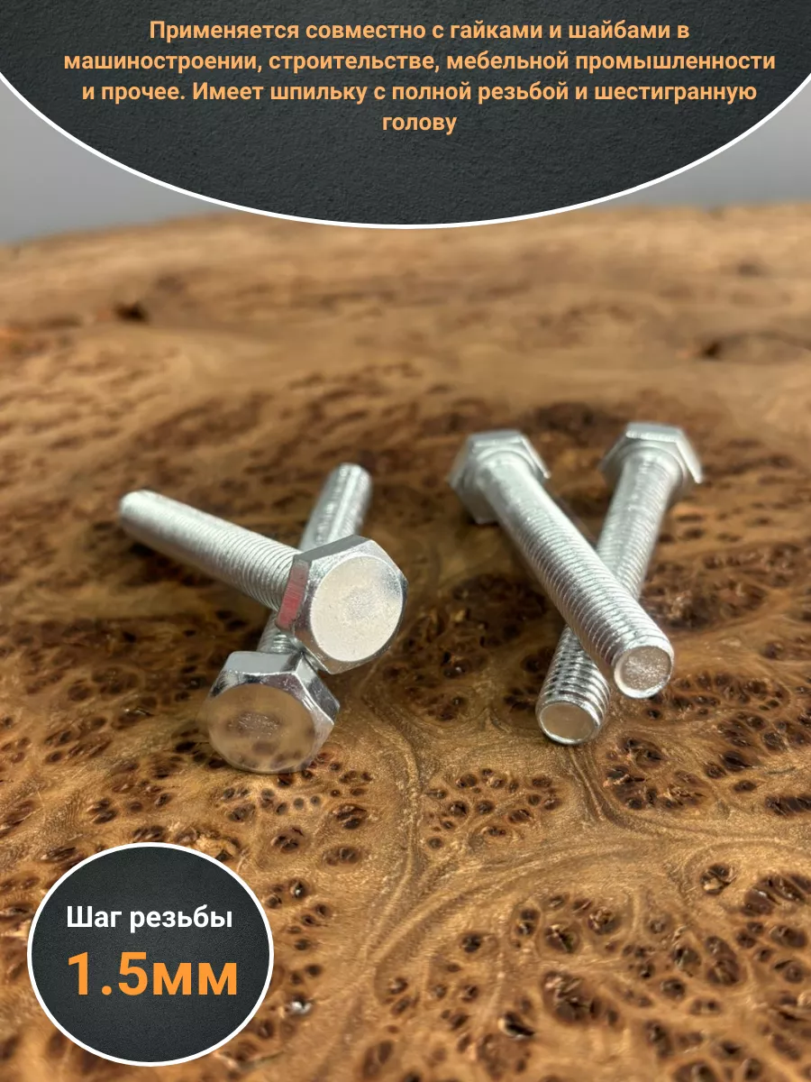Область применения: Ремонтно-строительные работы, монтажные операции, производство станочного оборудования, автомобилей, дорожной и сельскохозяйственной техники, приборов, сборка металлоконструкций не могут обойтись без применения стальных болтов, соответствующих DIN 933. Изделие сделано из оцинкованной стали. Чтобы получить с помощью болта надежное резьбовое соединение, его применяют в сочетании с гайкой и шайбами либо делают в деталях сквозные, глухие резьбовые отверстия. Крепеж состоит из стержня цилиндрической формы с полной резьбой М10 и шестигранной шляпки. Последний элемент предназначен для передачи от инструмента изделию момента затяжки в процессе закручивания.
