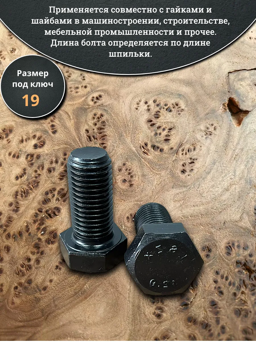 Болт высокопрочный 12х30 мм, DIN933, к.п.12.9 черный, 2шт.