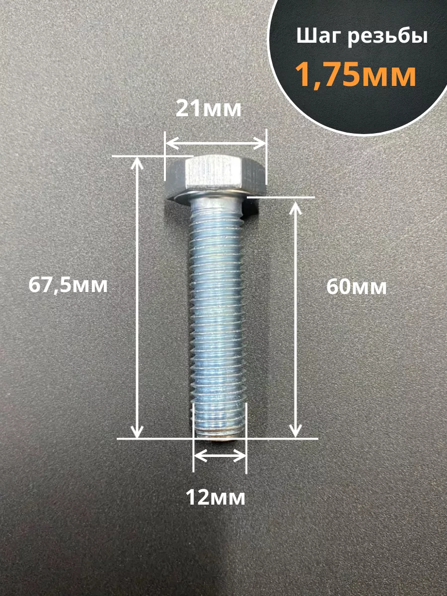 Болт высокопрочный 12х60 мм, DIN933 к.п.12.9 , ОЦ, 10шт.