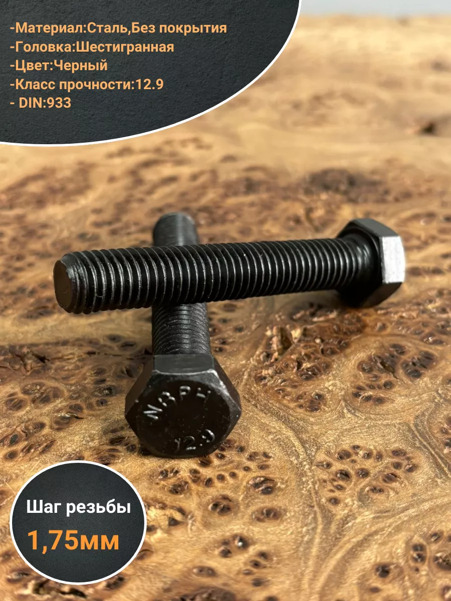 Болт высокопрочный 12х60 мм, DIN933, к.п.12.9 черный, 2шт.