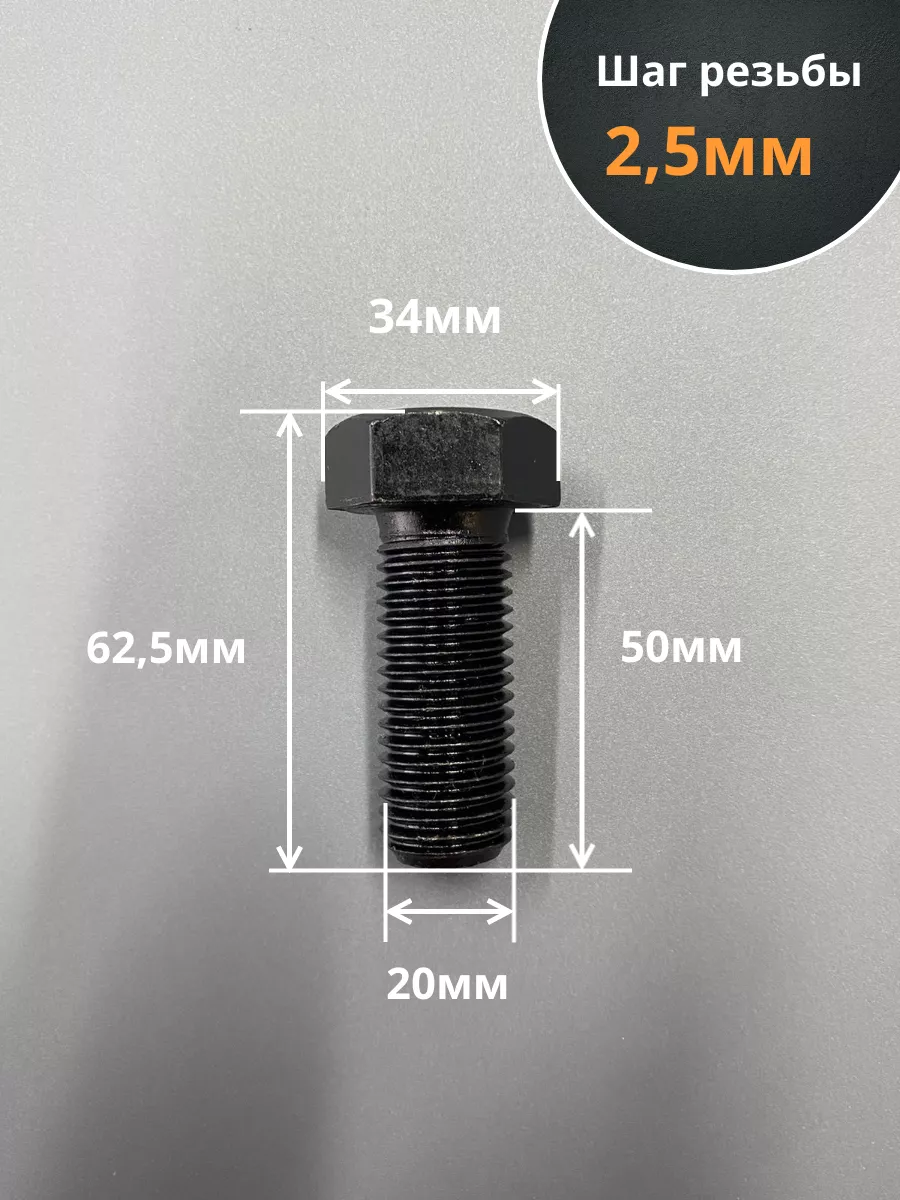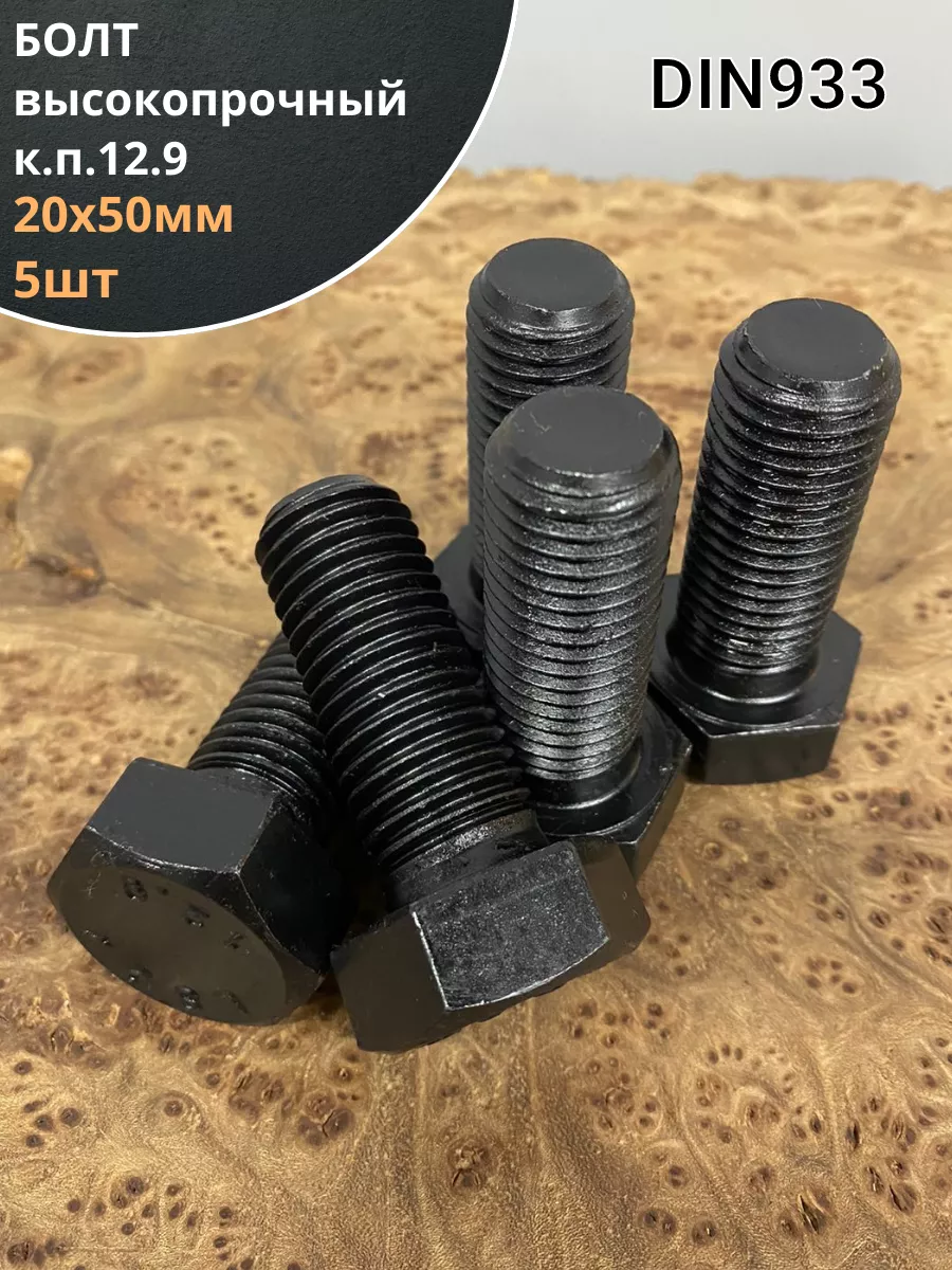 Болт М20х50 мм, DIN933, высокопрочный 12.9 , 5 шт.