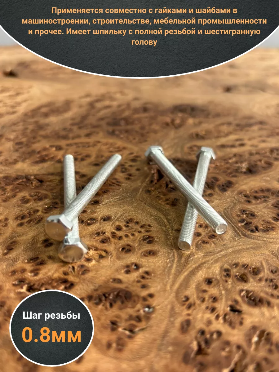 Применяется совместно с гайками и шайбами в машиностроении, строительстве, мебельной промышленности и прочее. Имеет шпильку с полной резьбой и шестигранную голову. Длина болта определяется по длине шпильке. Стандартный класс прочности для болтов от 4,8 до 5,8. Самый распространенный вид болтов применяется совместно с гайками и шайбами. Материал основания: Металл, дерево
