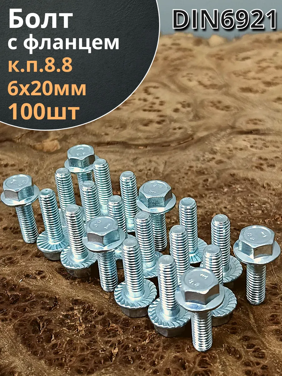 Болт М6х20 с фланцем к.п.8.8 ОЦ DIN6921, (100 шт.)