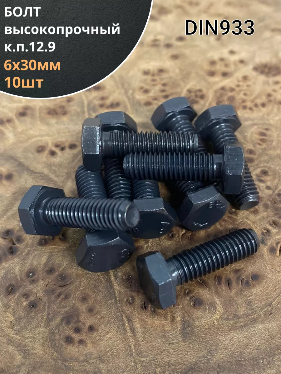 Болт М6х30 мм, DIN933, высокопрочный 12.9, 10шт.
