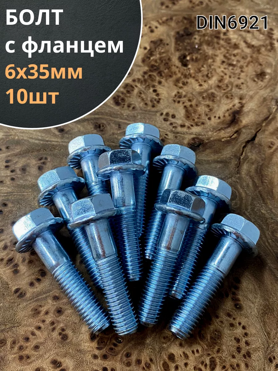 Болт М6х35 с фланцем к.п.8.8 ОЦ DIN6921, (10 шт.)