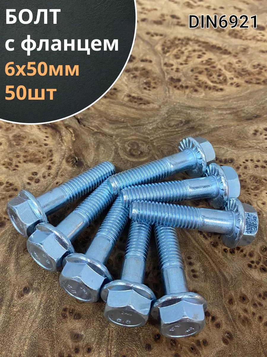 Болт М6х50 с фланцем к.п.8.8 ОЦ DIN6921, (50 шт.)