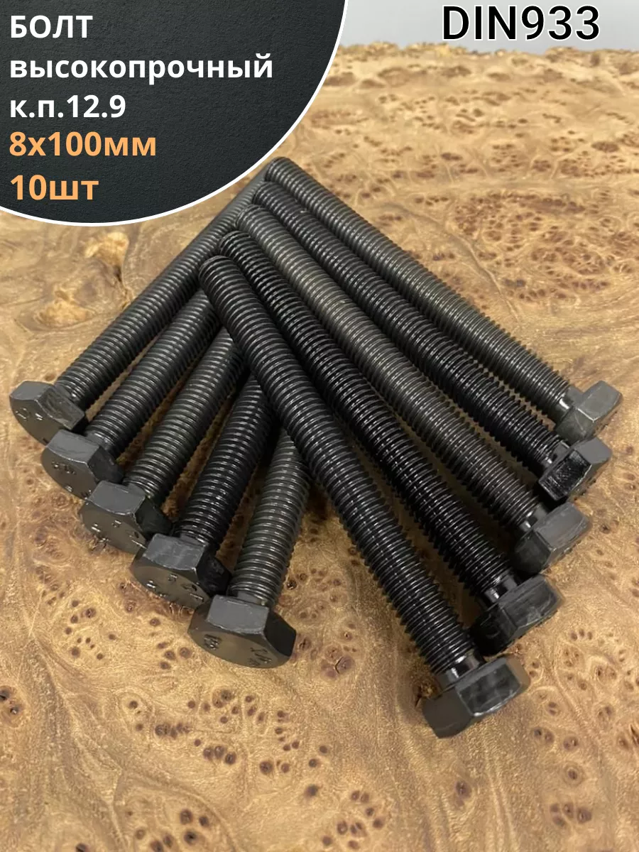 Болт М8х100, DIN933, высокопрочный 12.9, 10шт.