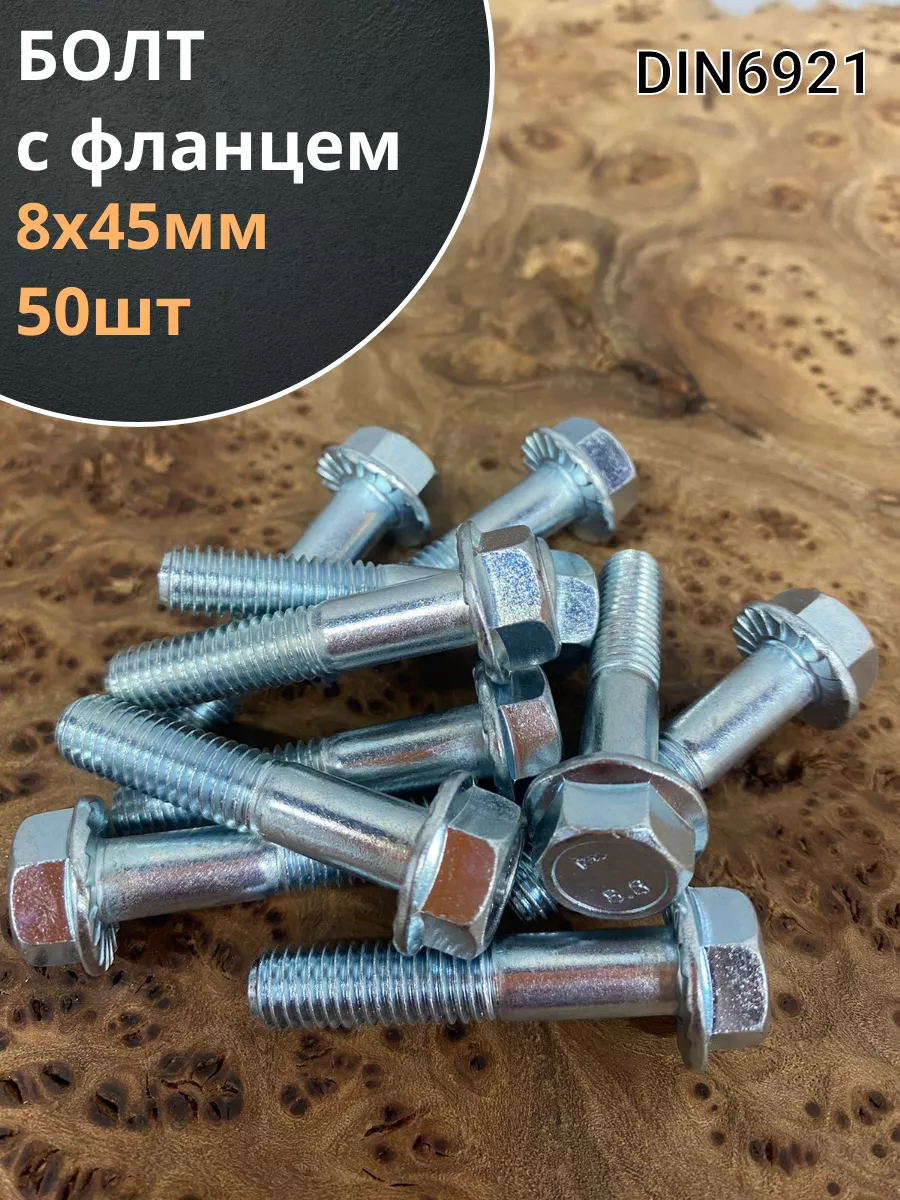 Болт М8х45 с фланцем к.п.8.8 ОЦ DIN6921, (50 шт.) 11201 1 шт.