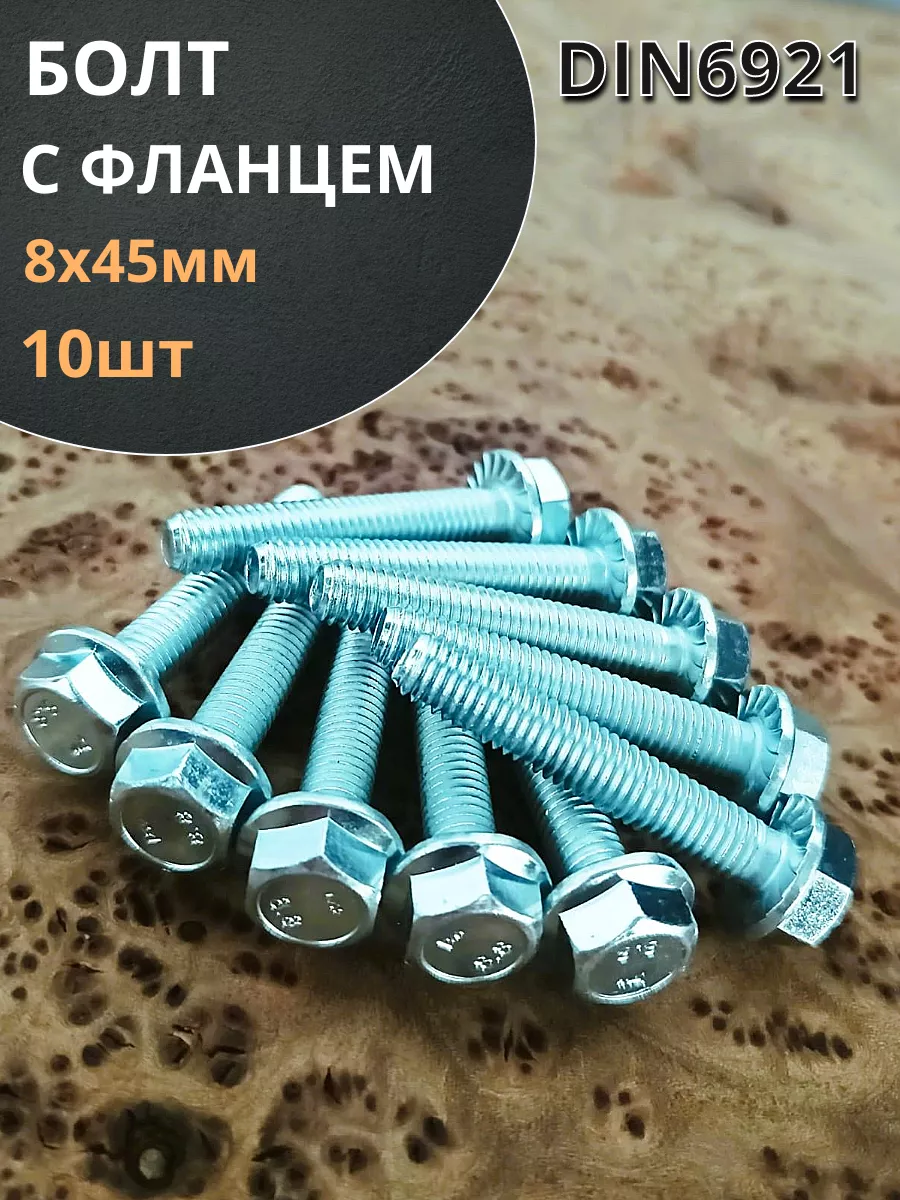 Болт М8х45 с фланцем к.п.8.8 ОЦ DIN6921, (10 шт.) 8869210845 1 шт.