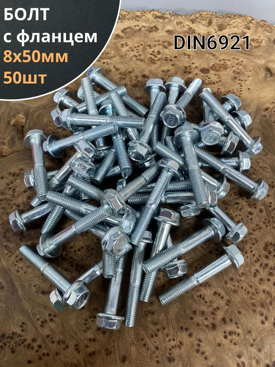 Болт М8х50 с фланцем к.п.8.8 ОЦ DIN6921, (50 шт.) 8869210850ф50 1 шт.