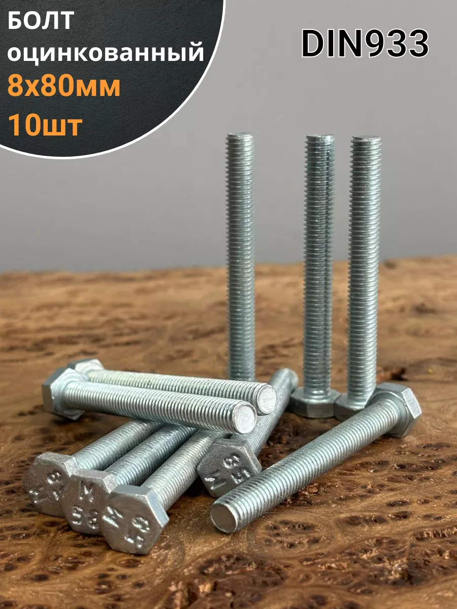 Болт оцинкованный М8х80 DIN933 10 шт.