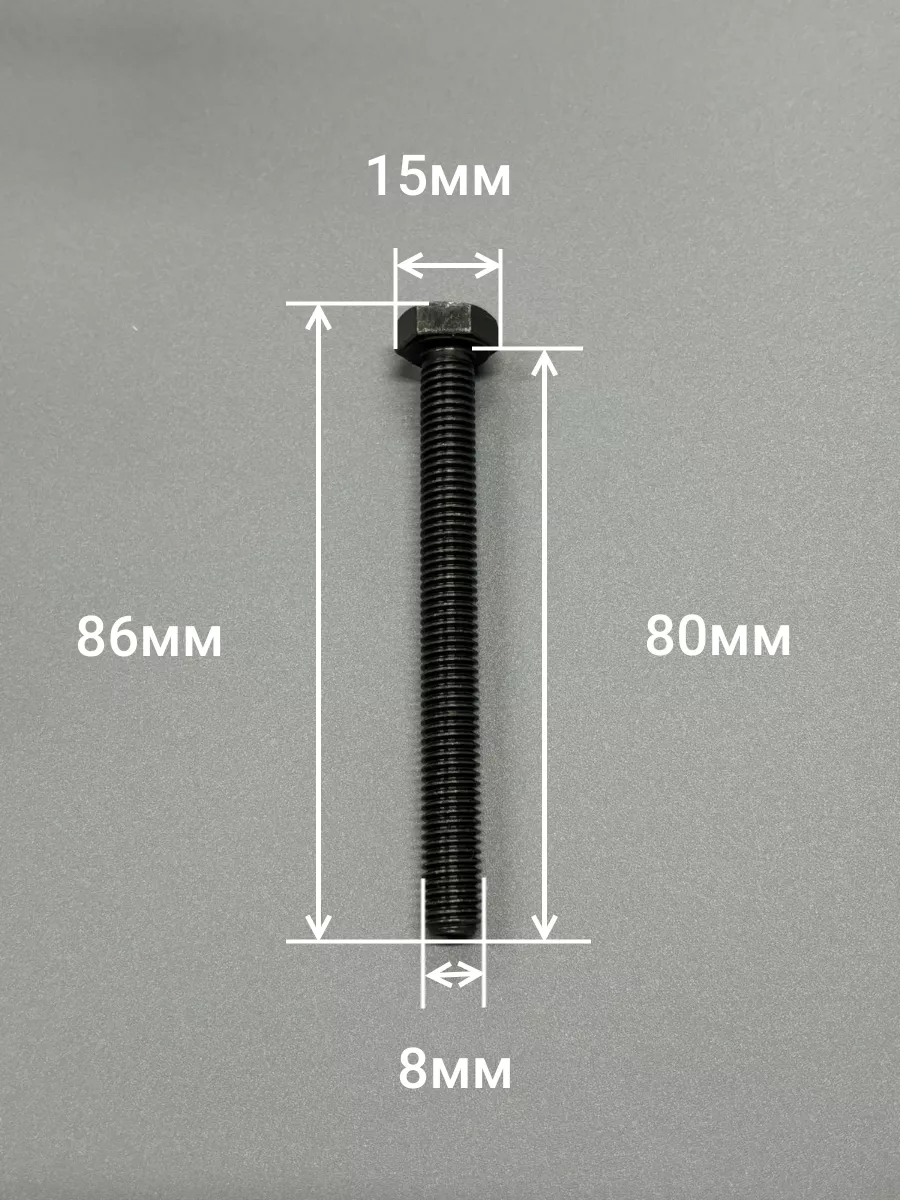 Болт высокопрочный 8х80 мм, DIN933, к.п.12.9 черный, 10шт.