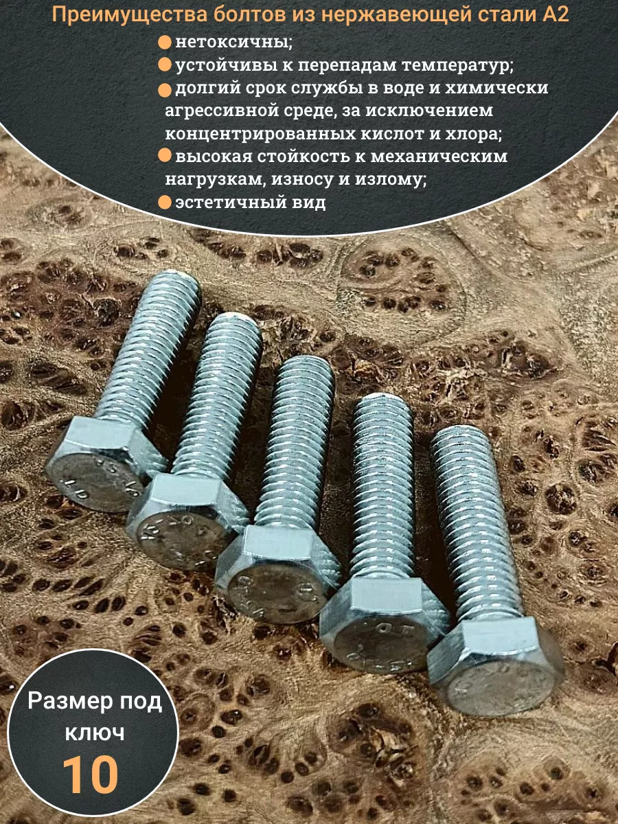 Нержавеющая сталь данной марки повышает прочность болта, который выдерживает динамические усилия и вибрацию. Изделие монтируют в помещениях и вне их. Крепеж имеет практически неограниченный ресурс работы, на который не влияет воздействие воды и изменений температуры воздуха.