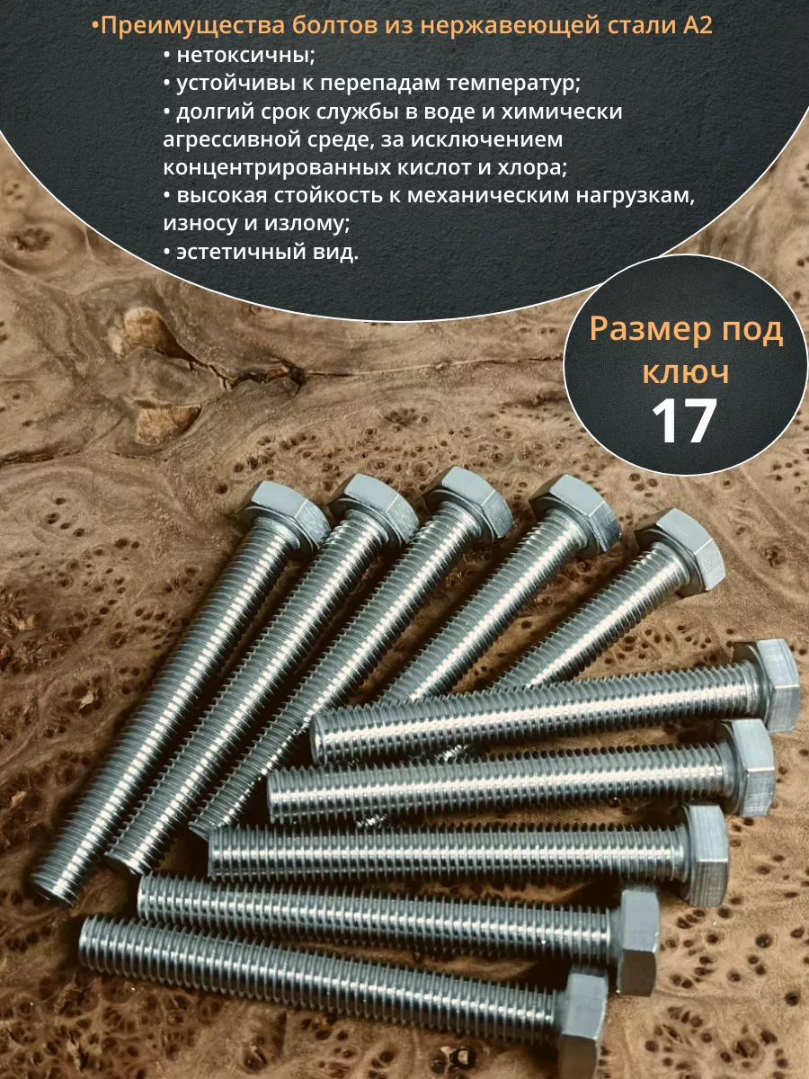 Болт нержавеющий 10х70 мм DIN933 10шт