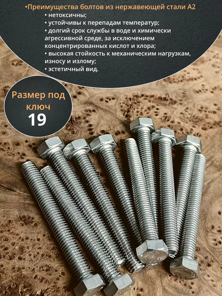 Болт нержавеющий 12х50 мм DIN933 10шт