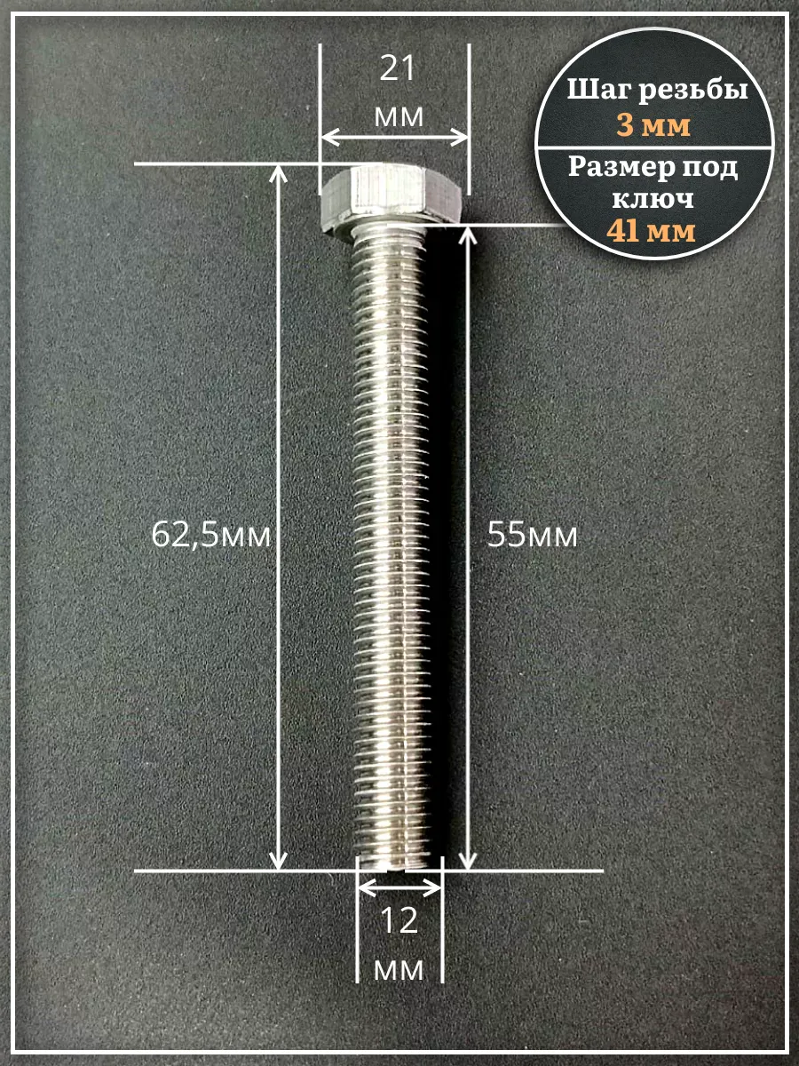 Болт нержавеющий 12х60 мм DIN933 10шт