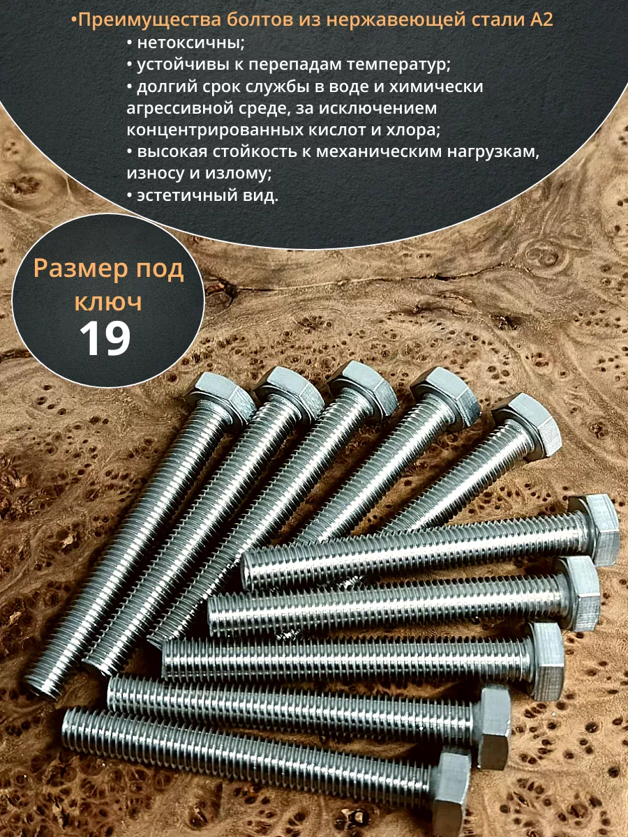 Болт нержавеющий 12х50 мм DIN933 10шт