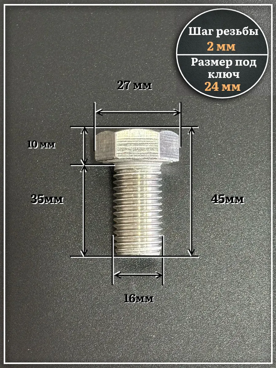 Болт нержавеющий М16х35 А2 DIN933, 4 шт.