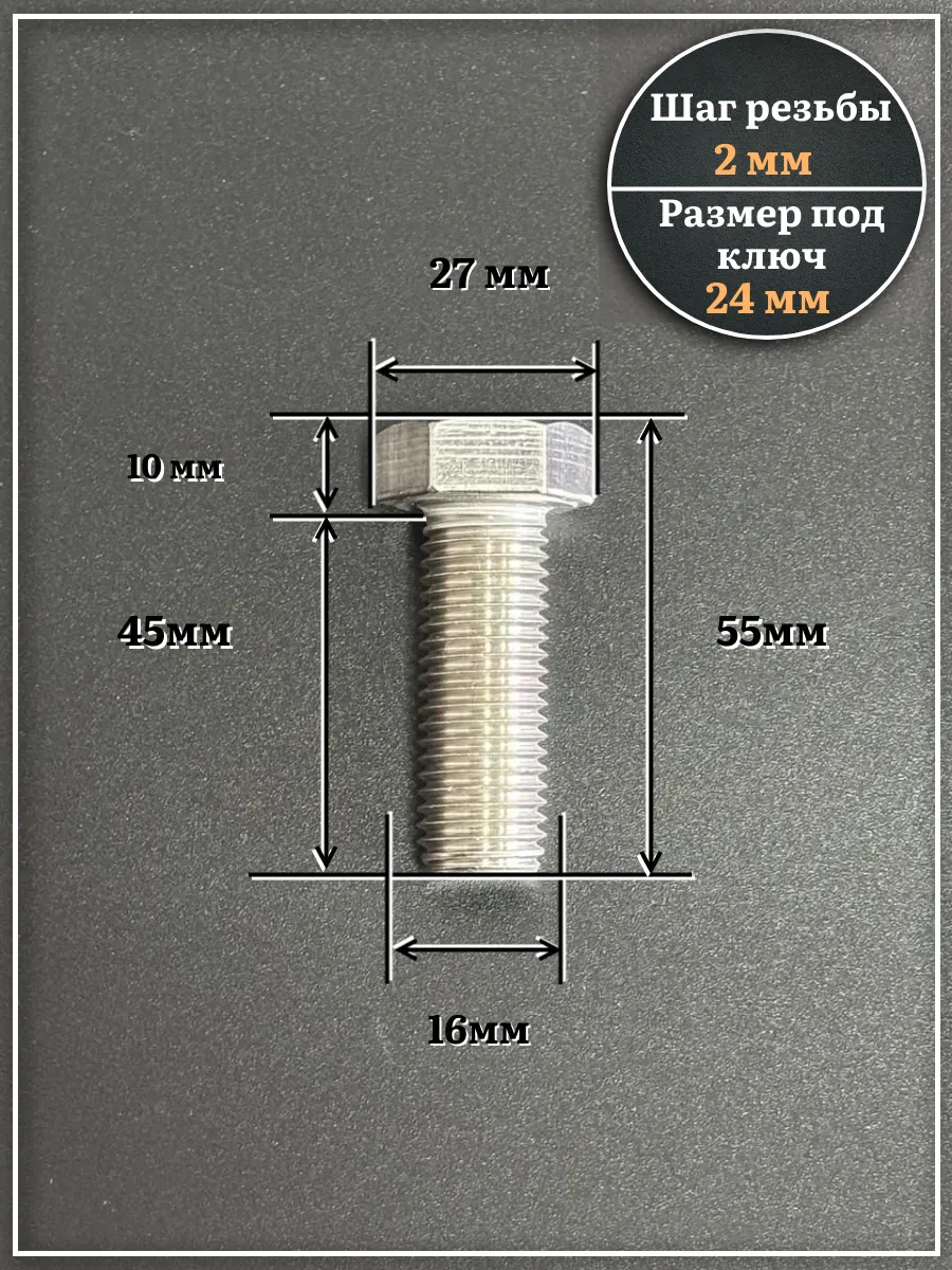 Болт нержавеющий М16х45 А2 DIN933, 4 шт.