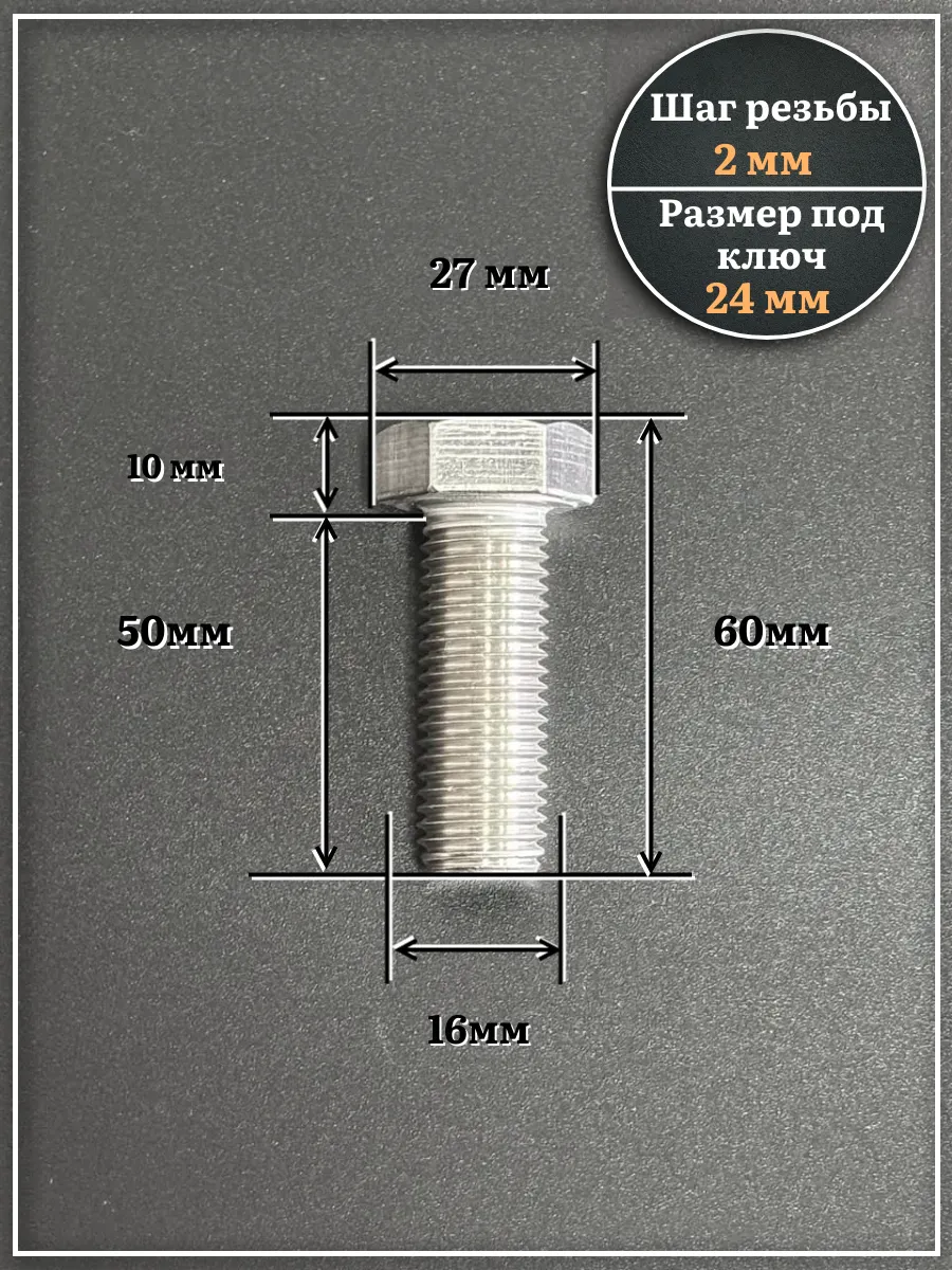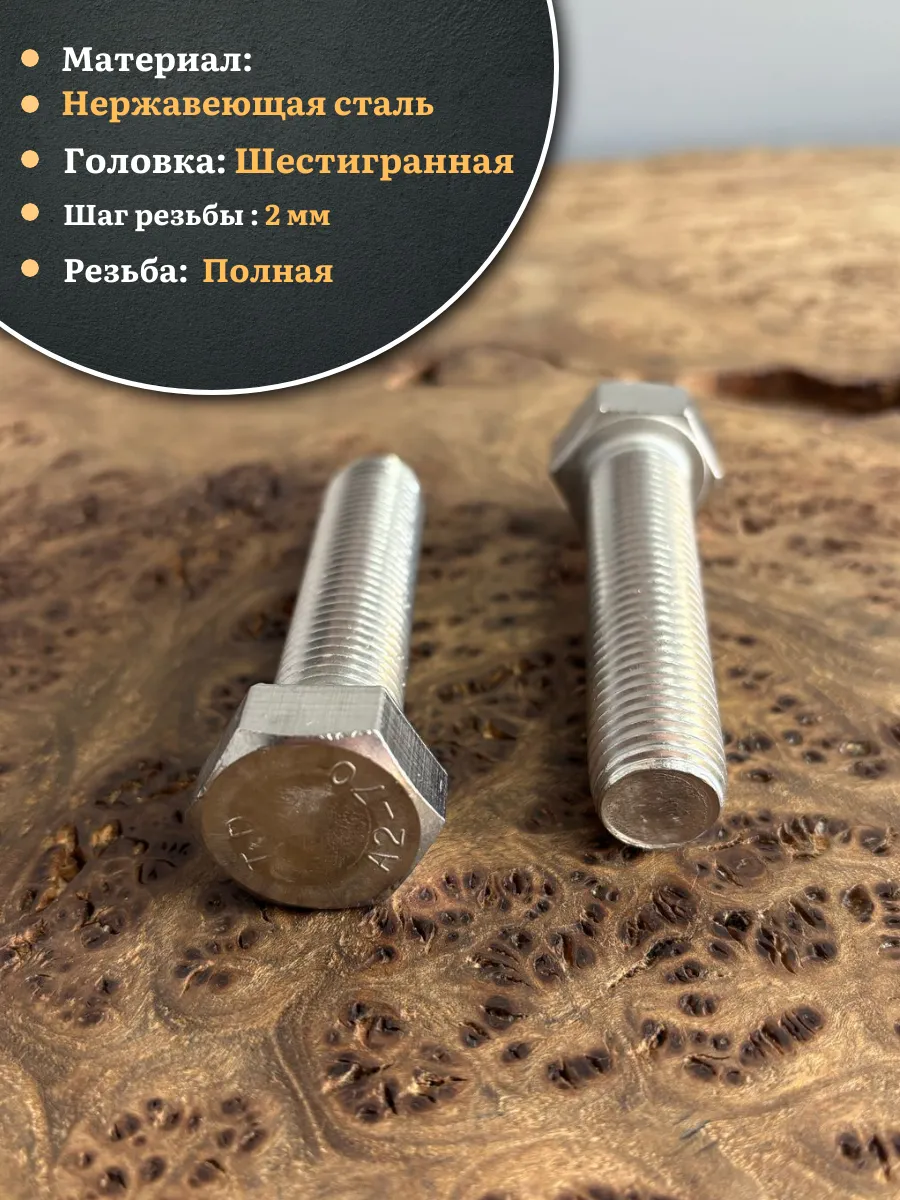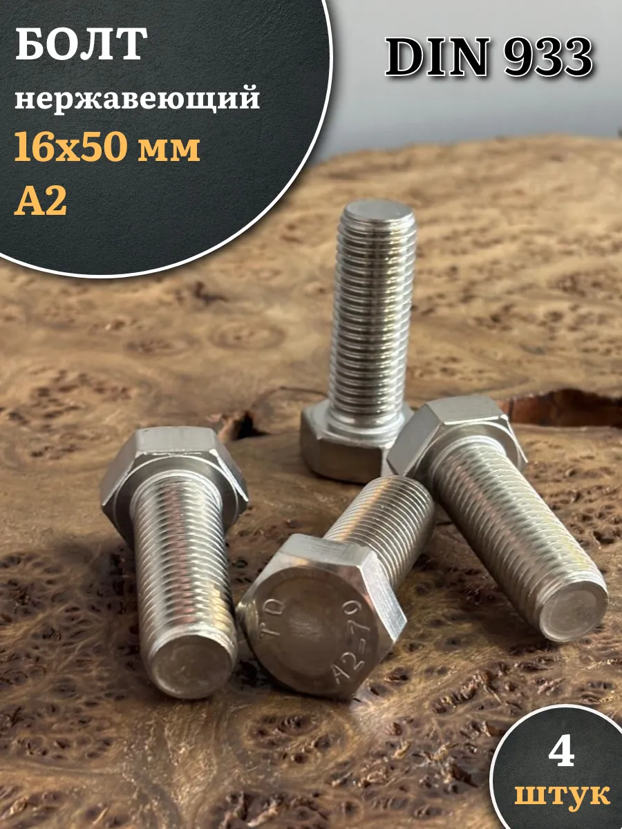 Болт нержавеющий М16х50 А2 DIN933, 4 шт.