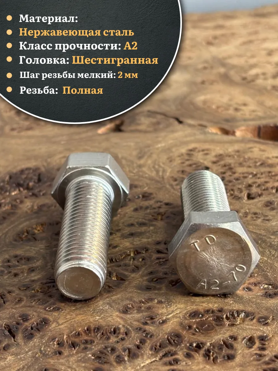 Болт нержавеющий М16х55 А2 DIN933, 4 шт.