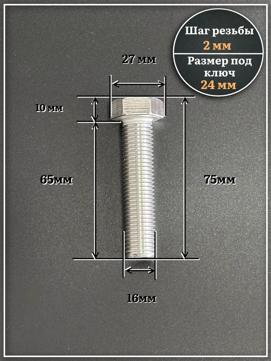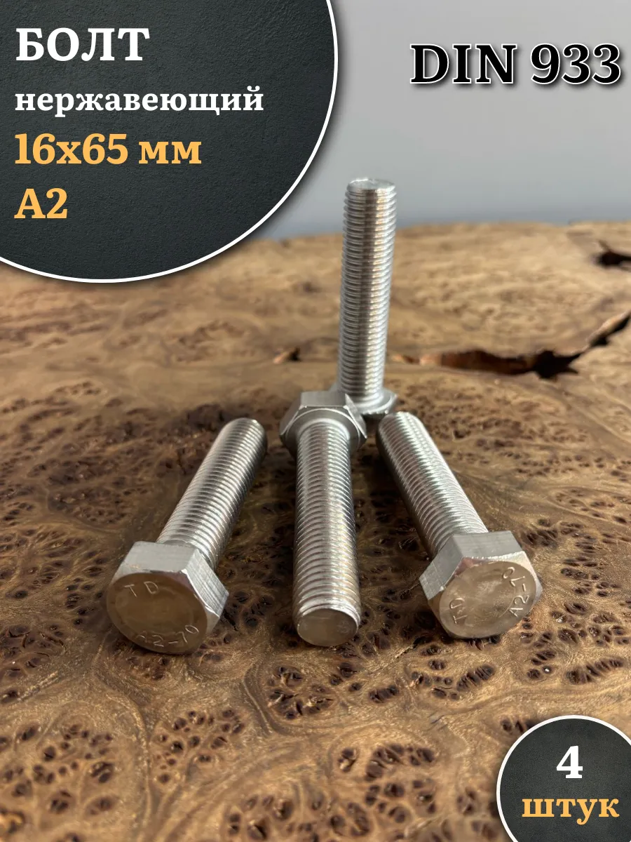 Болт нержавеющий М16х65 А2 DIN933, 4 шт.