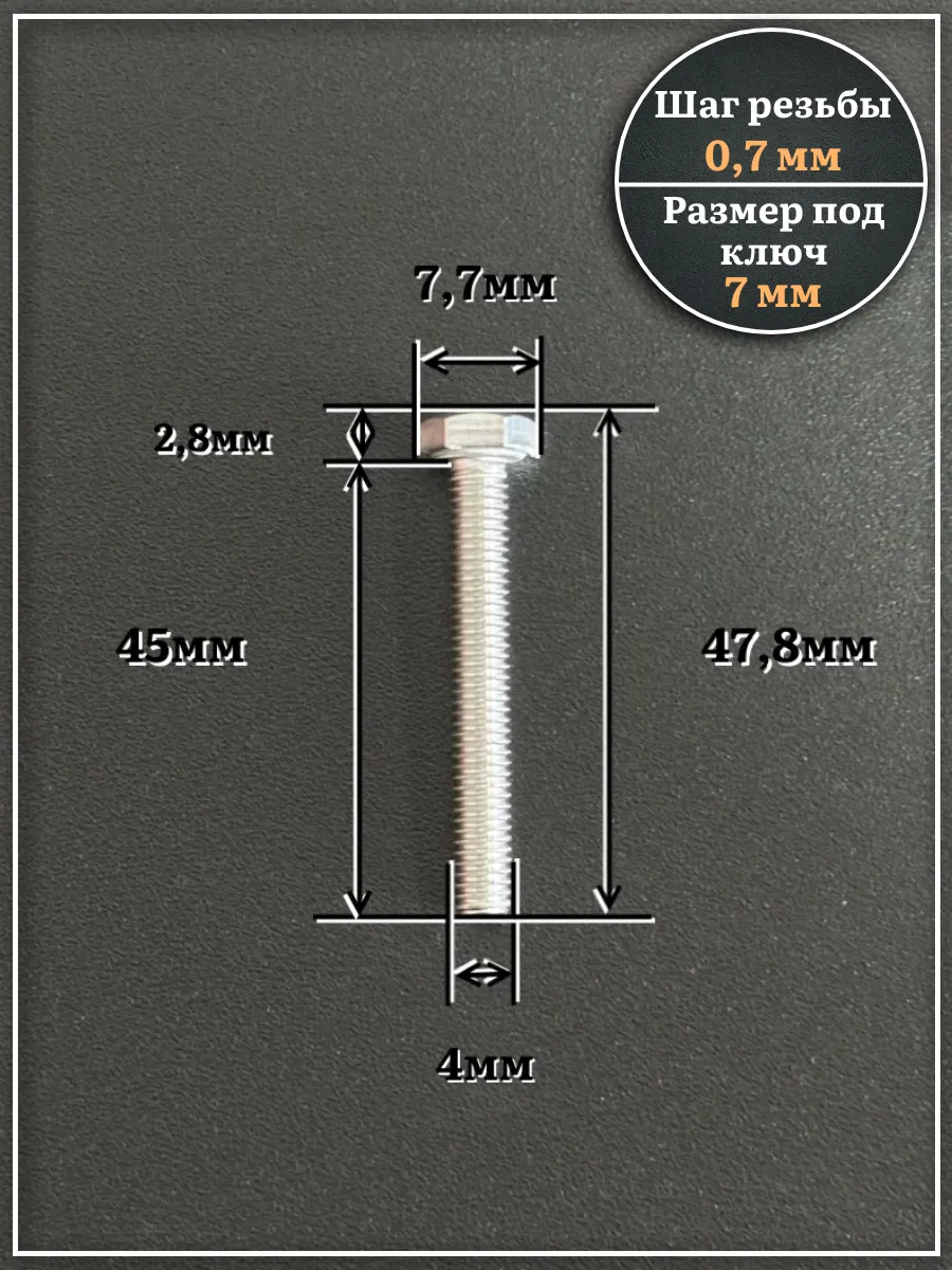 Болт нержавеющий 4х45 мм DIN933, 50 шт. бн445ф50 1 шт.