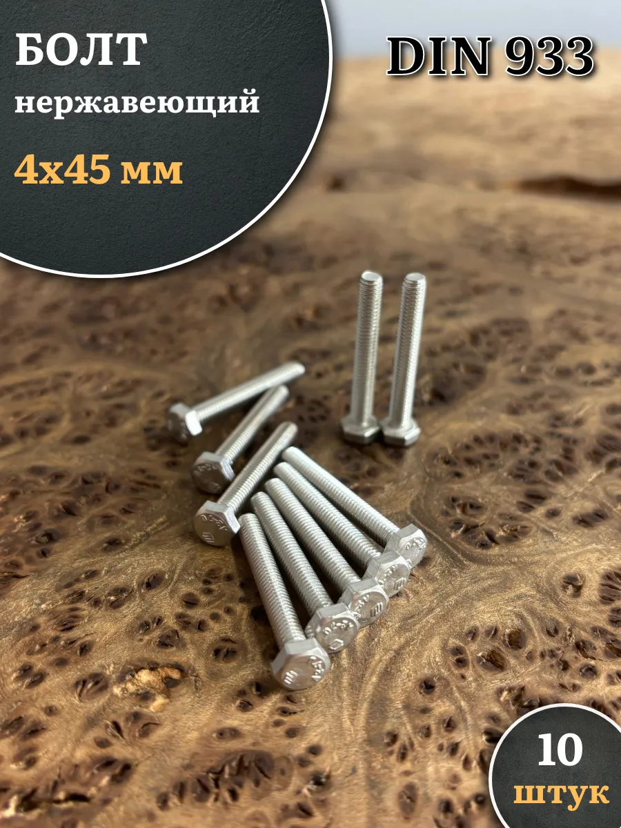 Болт нержавеющий 4х45 мм DIN933, 10 шт. бн445 1 шт.