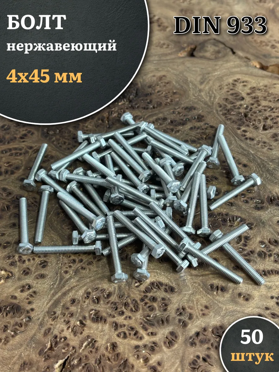 Болт нержавеющий 4х45 мм DIN933, 50 шт. бн445ф50 1 шт.