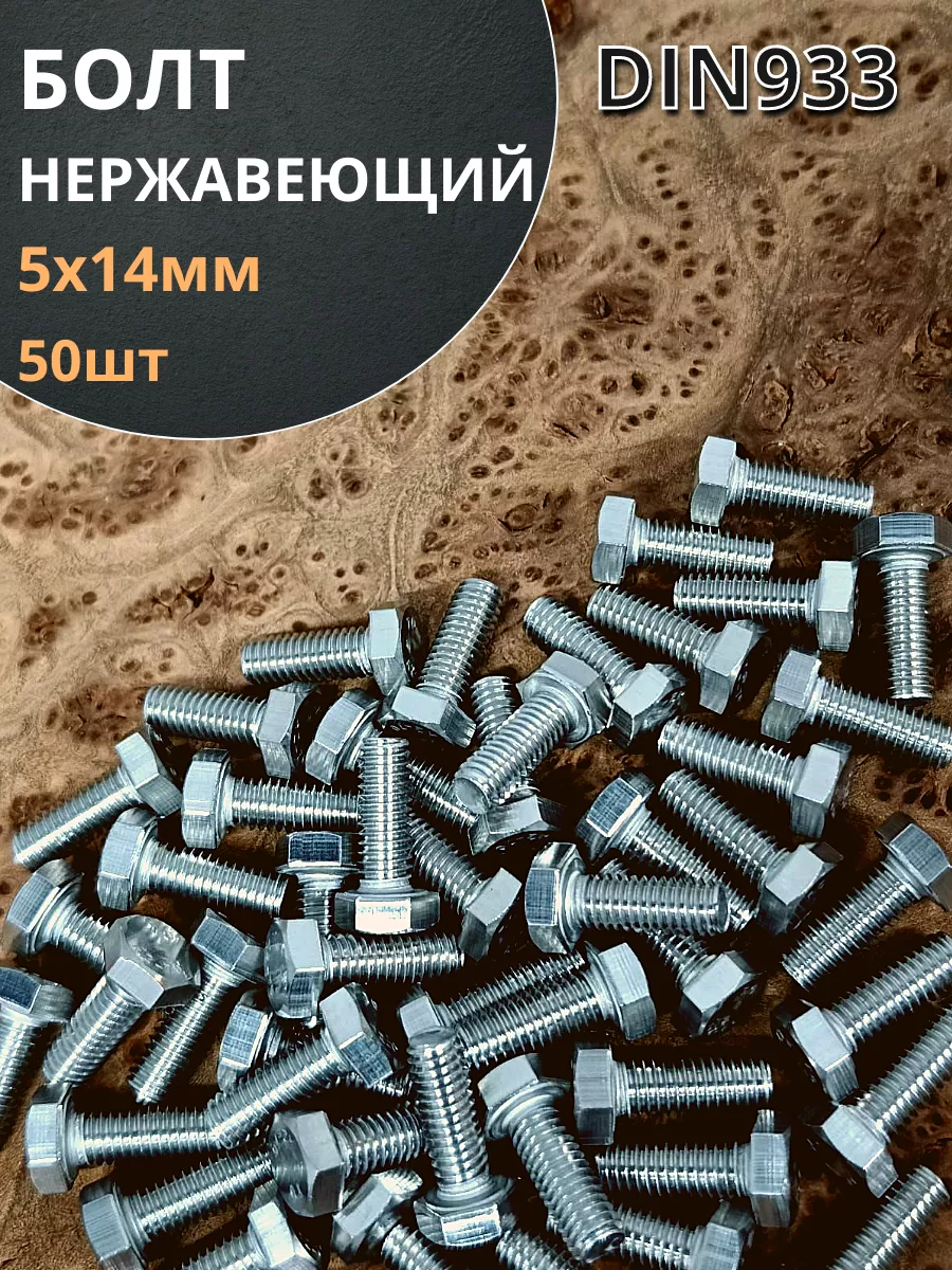 Болт нержавеющий 5х14 мм DIN933 500шт АС1300501493D07ф500 1 шт.