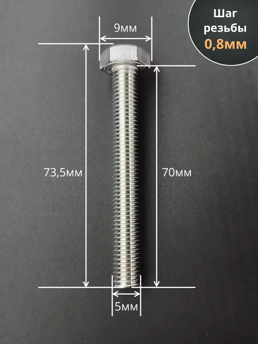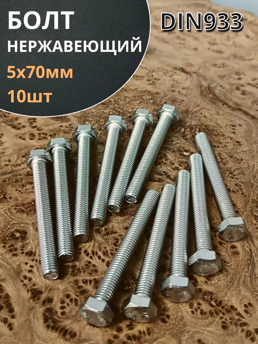 Болт нержавеющий 5х70 мм DIN933 10шт