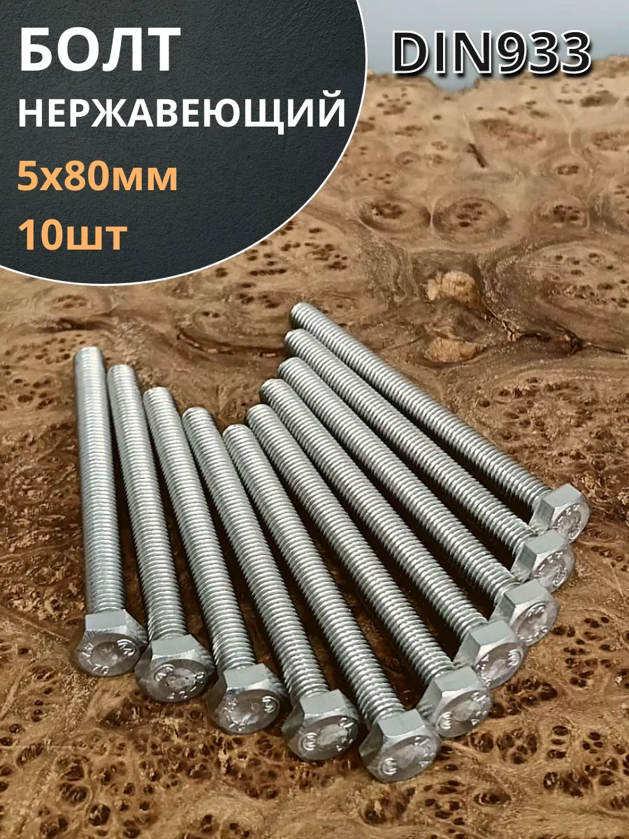 Болт нержавеющий 5х80 мм DIN933 10шт