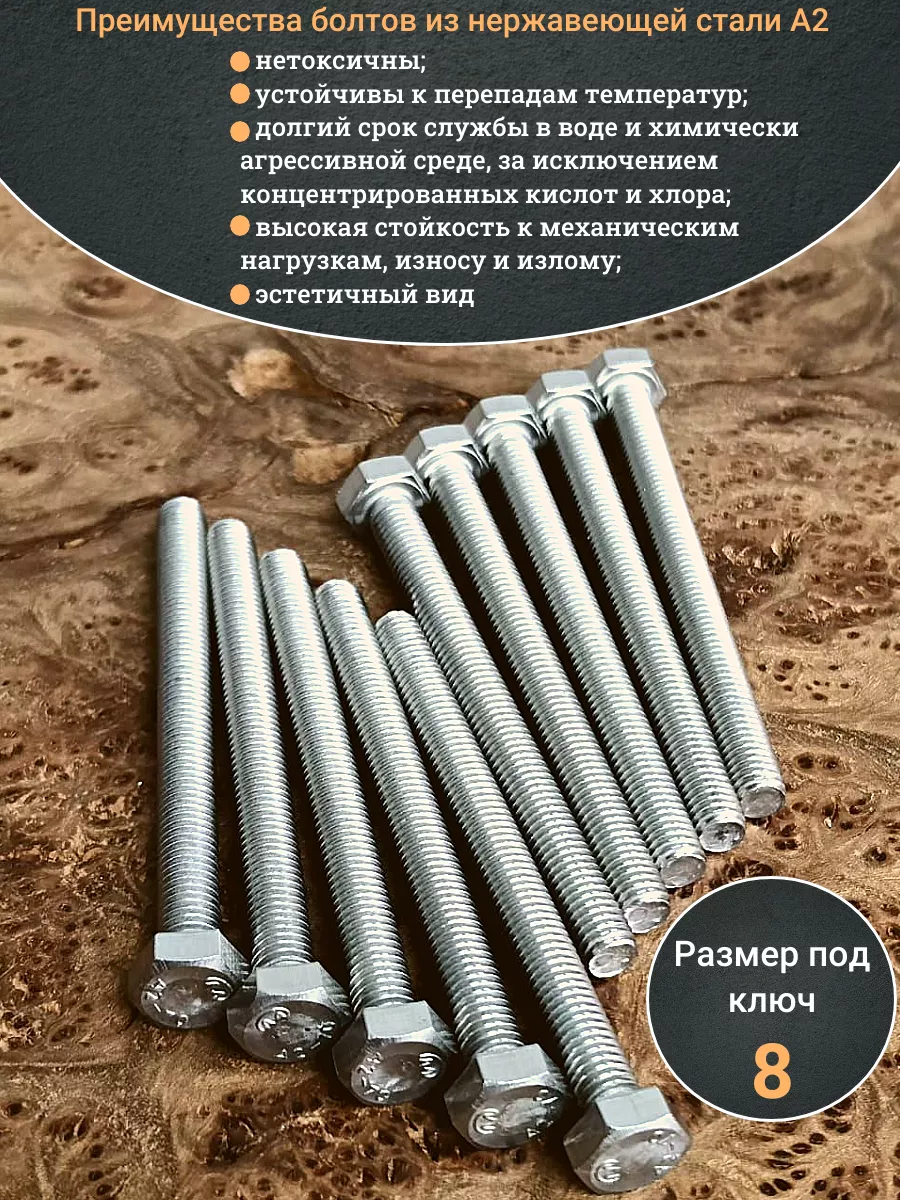 Болт нержавеющий 8х30 мм DIN933 10шт