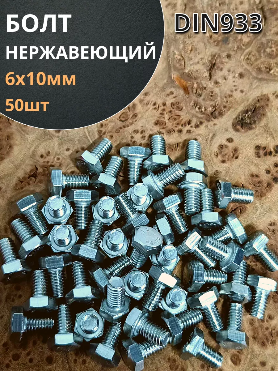 Болт нержавеющий 6х10 мм DIN933 10шт АС1300601093D07 1 шт.