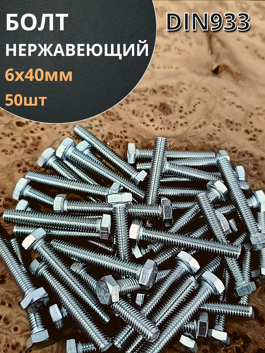 Болт нержавеющий 6х40 мм DIN933 , 50шт 11130 1 шт.