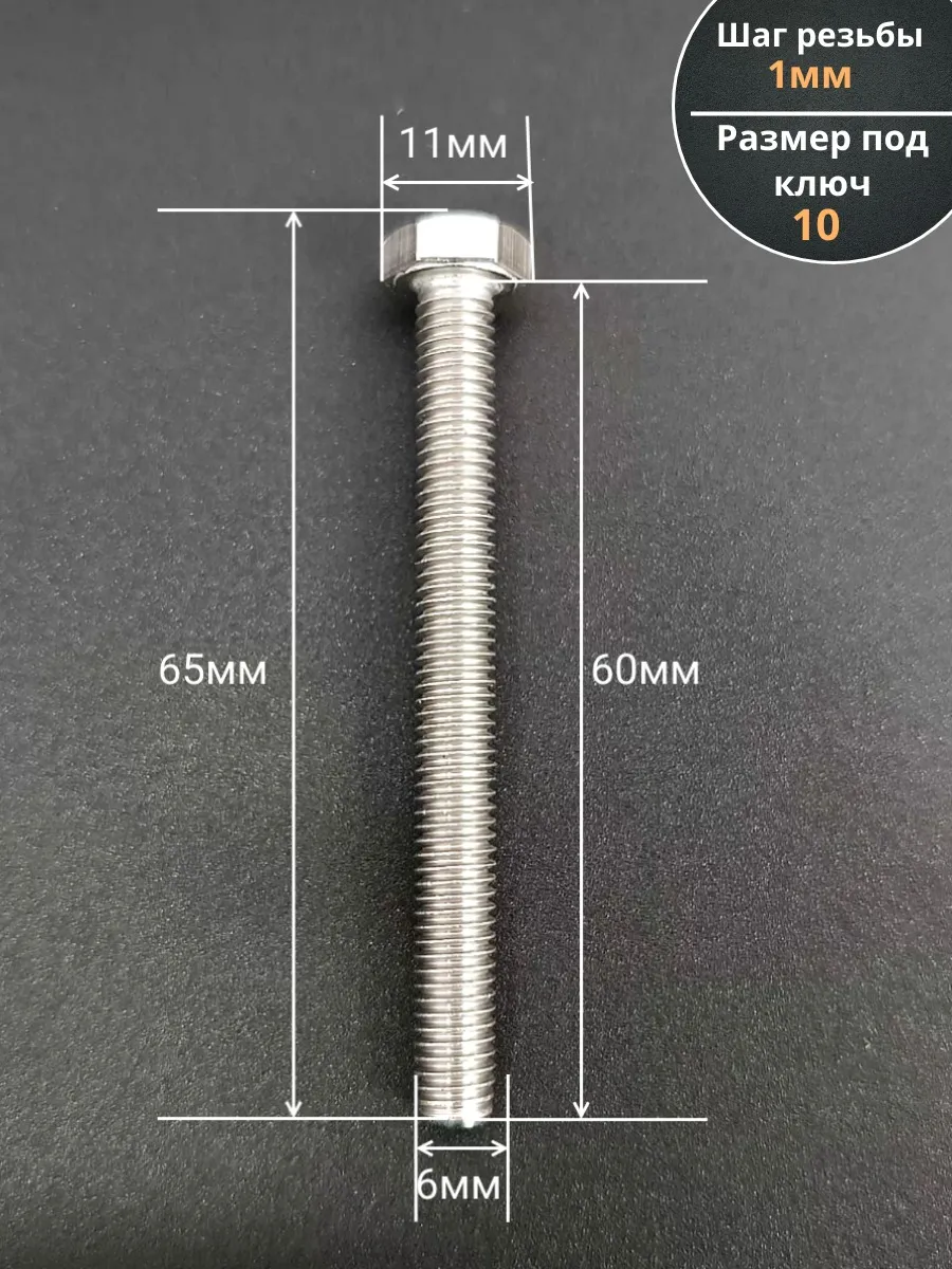 | Болт нержавеющий 6х60 мм DIN933 10шт | АС1300606092G07 | 1 шт. |