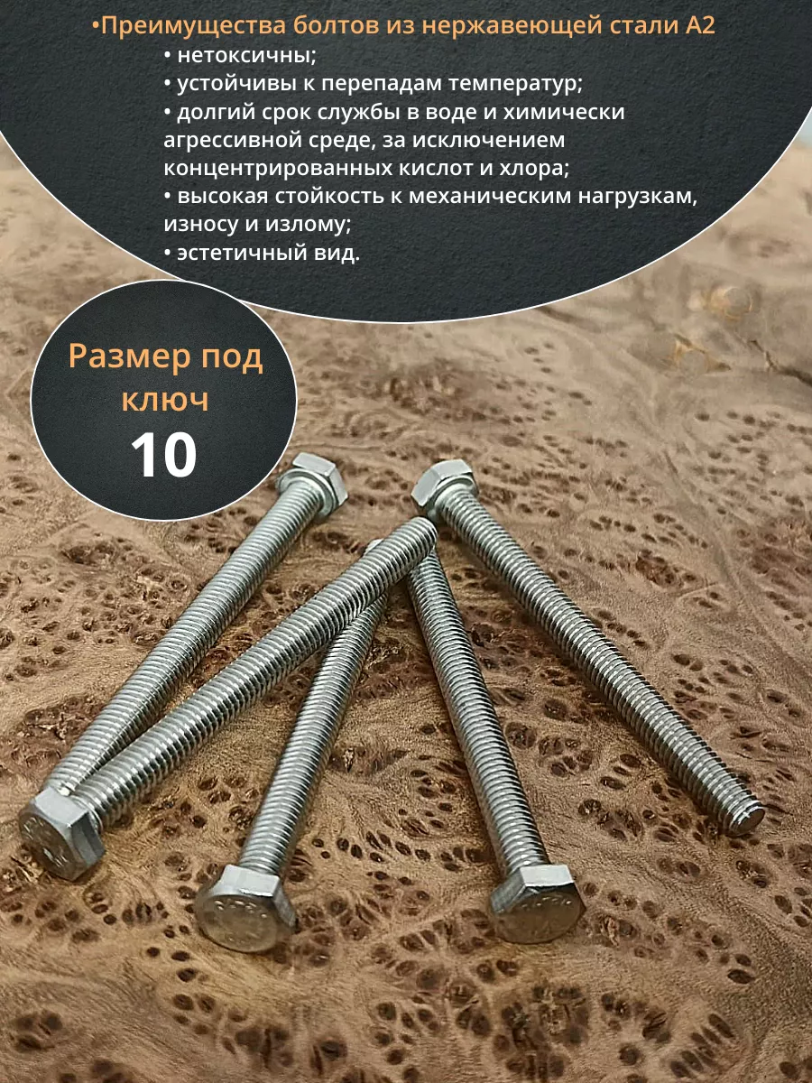Болт нержавеющий 5х10 мм DIN933 10шт