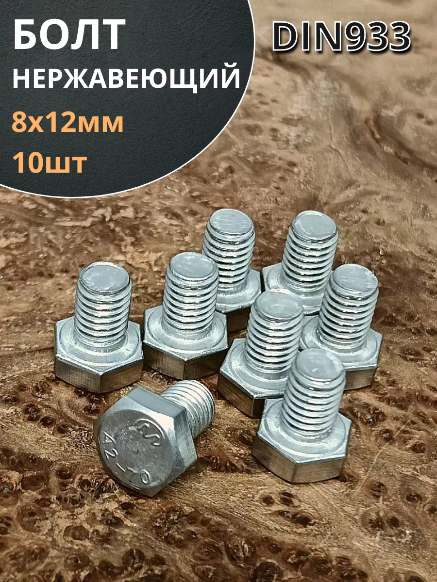 Болт нержавеющий 8х12 мм DIN933 10шт бн812 1 шт.