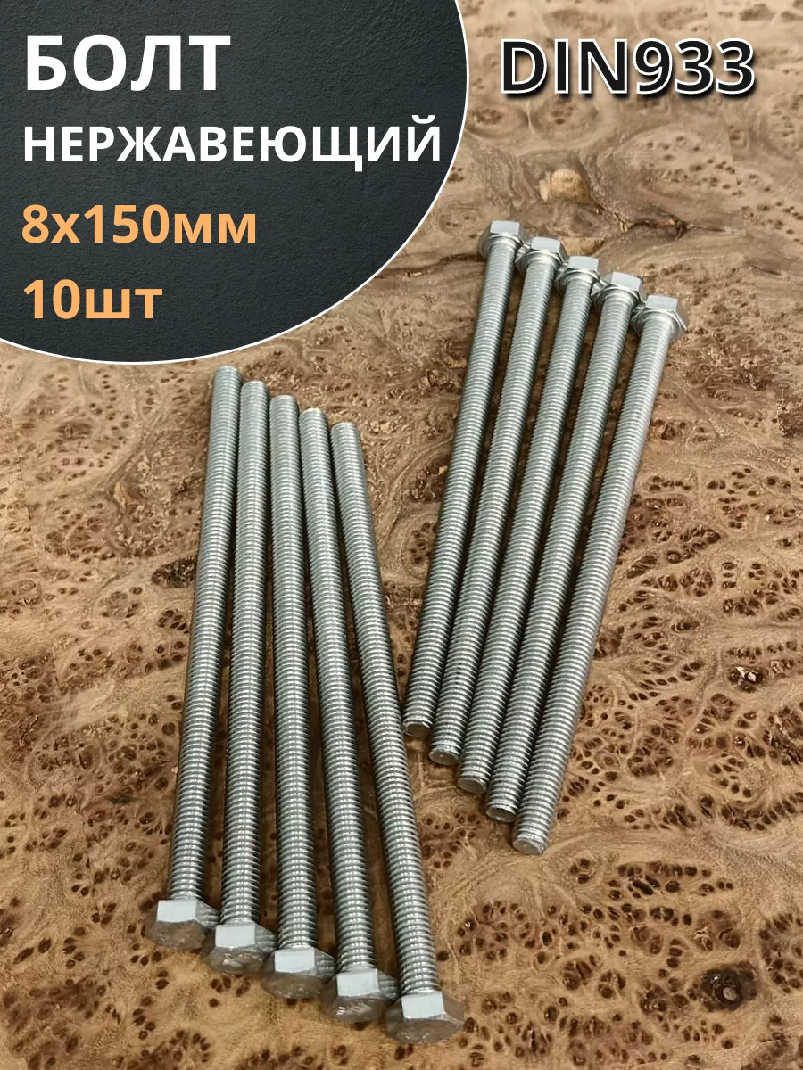 Болт нержавеющий 8х150 мм DIN933 10шт
