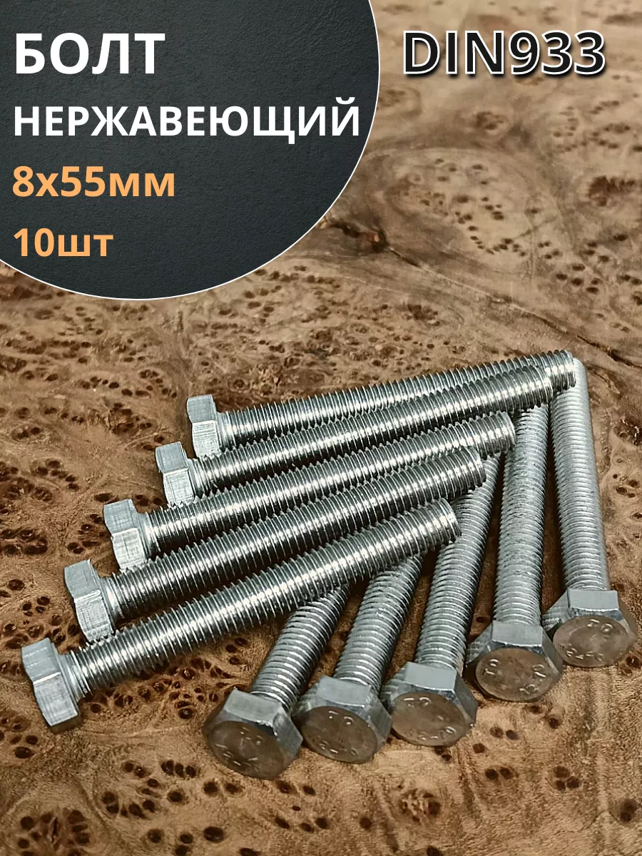 Болт нержавеющий 8х55 мм DIN933 10шт
